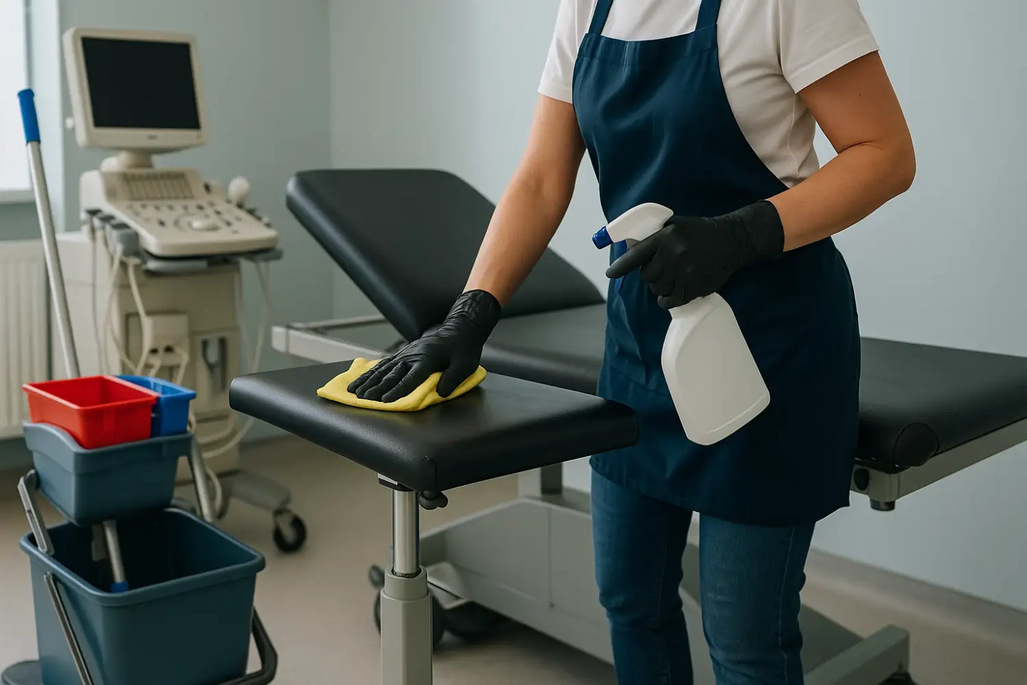 Désinfection complète des salles de consultation, d’examen, d’imagerie ou de soins (bionettoyage), mobilier médical, plans de travail, surfaces de contact...
